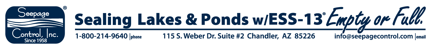 Seepage Control, Inc. has been in the business of lake sealing and building pond liners for over 50 years. We are a proponent and manufacturer of ESS-13, an environmental soil sealant, and have been involved with nearly every type of lining system. Click here to contact us.